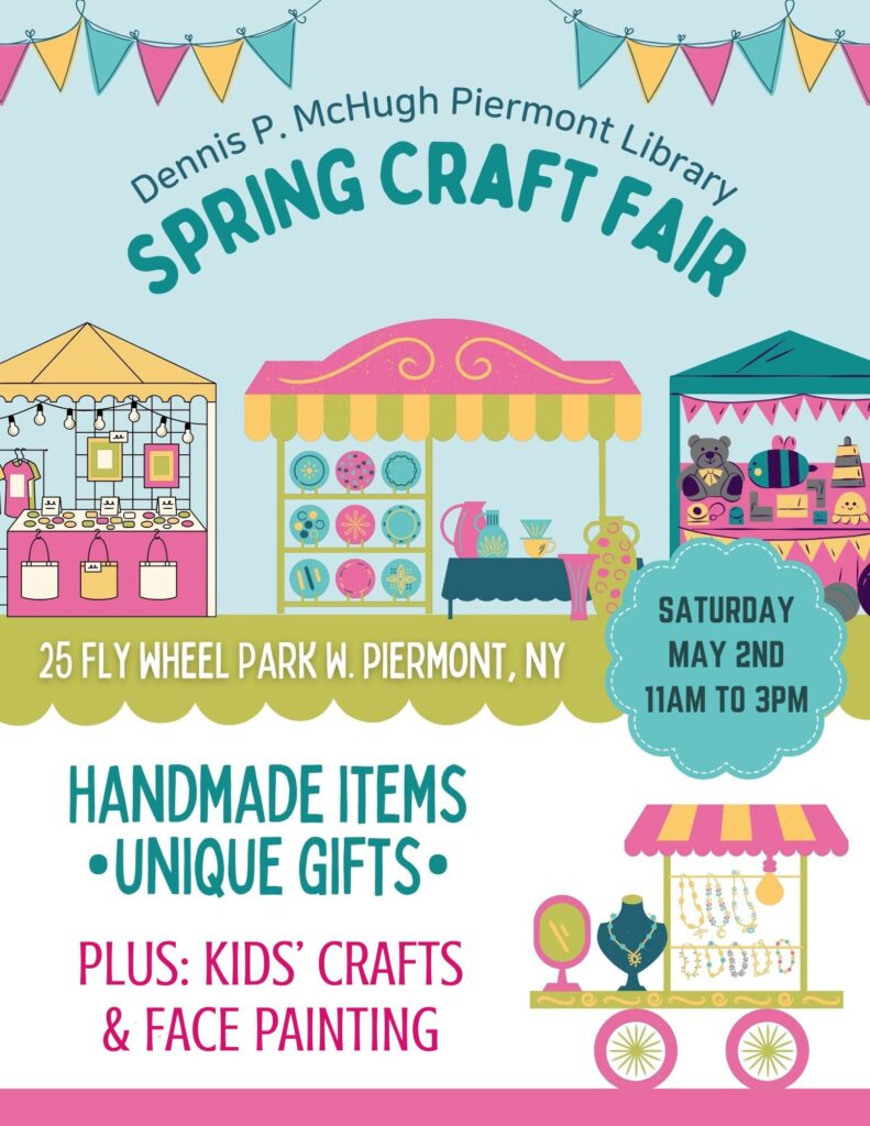 Piermont Library’s Spring Craft Fair is coming up on Saturday, May 2rd, from 11am-3pm! Unique gifts and handmade items from various vendors of all ages will be for sale. You might even find the perfect gift for Mother’s Day!